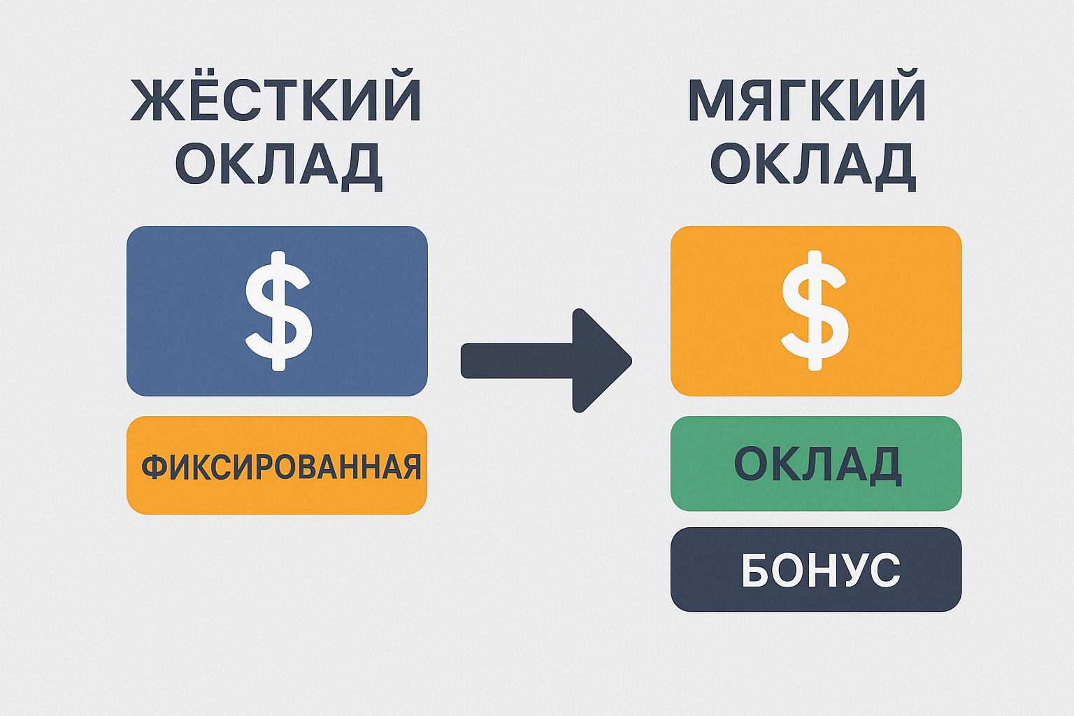 👉 Такой подход делает правила оплаты прозрачными: сотрудник получает гарантированную «бетонную» часть и понимает, что именно влияет на сохранение мягкой части.